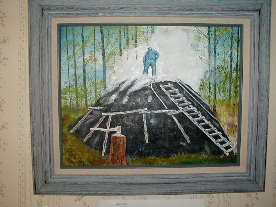 In the office: an actual Tuyere tip -- used to blow hot air into the furnace (pigs of iron in front) |