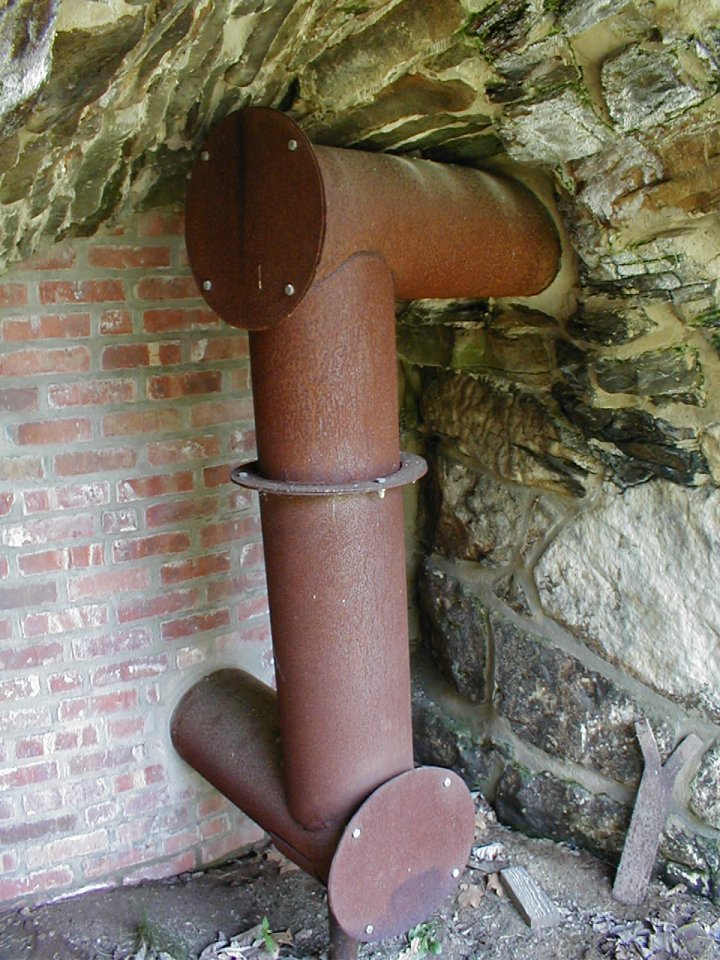 Pipes to blow heated air into the furnace (see next photo for explanation) |