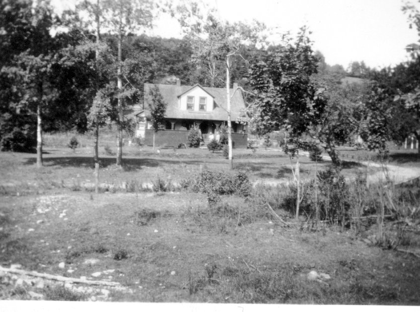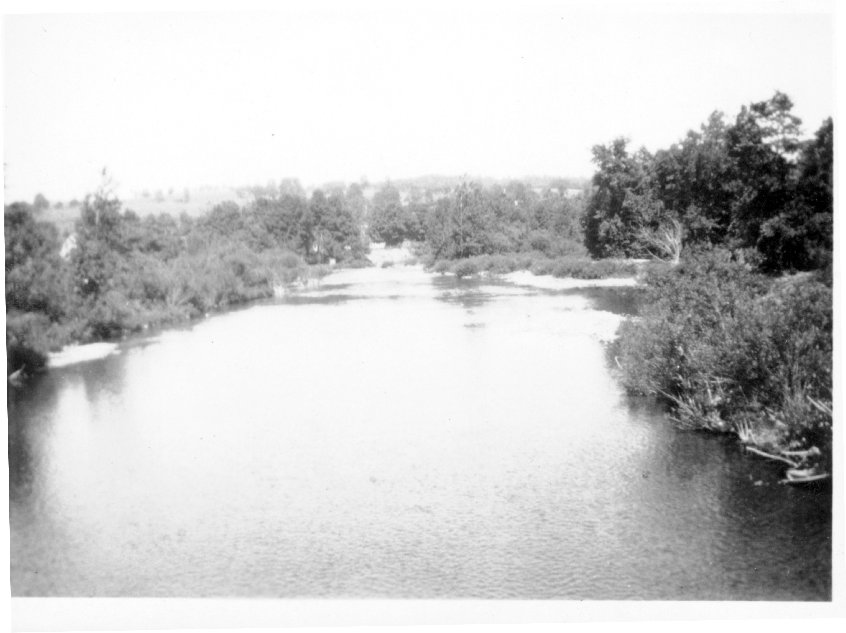 View down the Neversink River from the "iron bridge" circa 1933 |