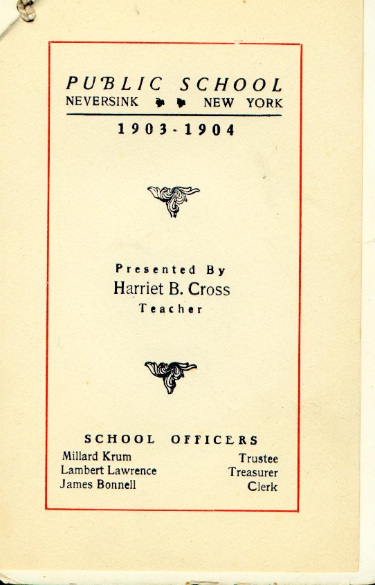 Neversink Public School "souvenir" for 1904 (cover) (These preceded yearbooks) |